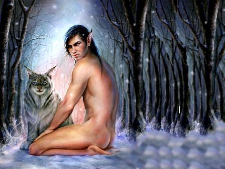 Un bello elfo con el reino animal sus grandes amigos, son muy semejantes al ser humano en apariencia aunque su orejas puntiagudas delatan sus raices con su Madre Tierra, gran conquistador de su especie.